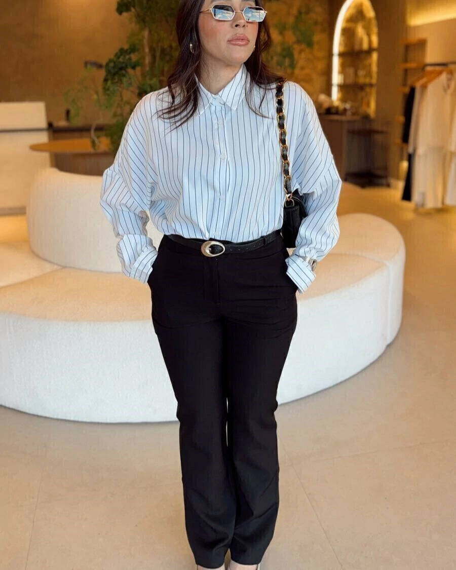 Com design atemporal, Calça Alfaiataria Mia se adapta facilmente a diferentes estilos e pode ser combinado com diversas peças do seu guarda-roupa. Ideal para quem busca praticidade sem abrir mão da elegância.