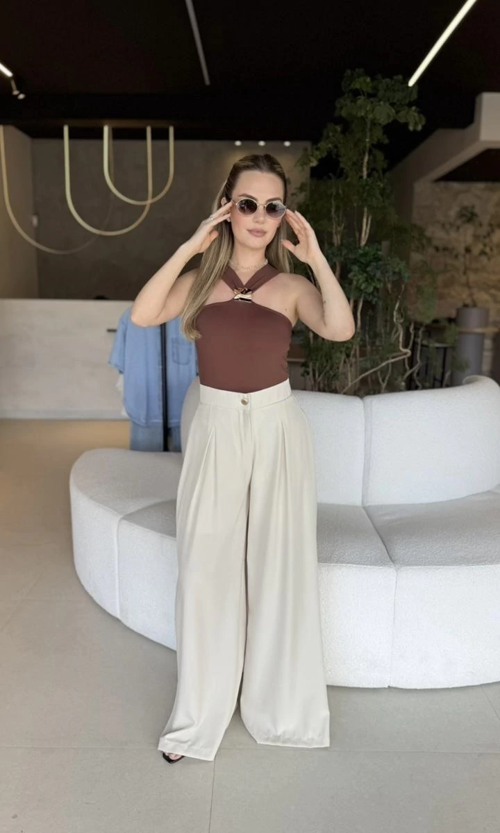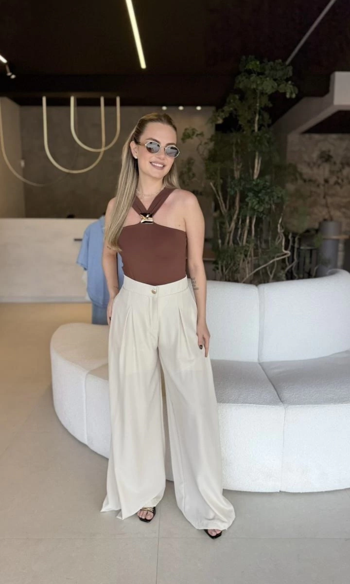 Vista-se com a sofisticação que você merece com a nossa Calça Pantalona em tecido alfaiataria.