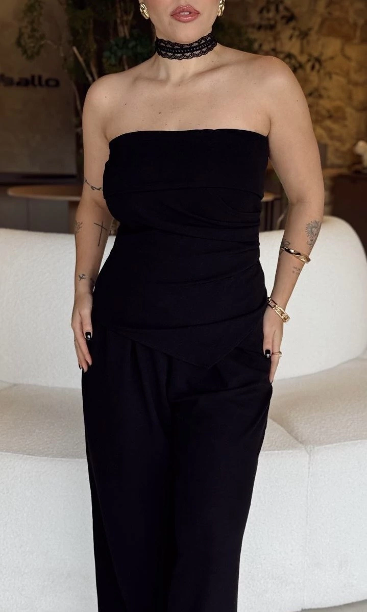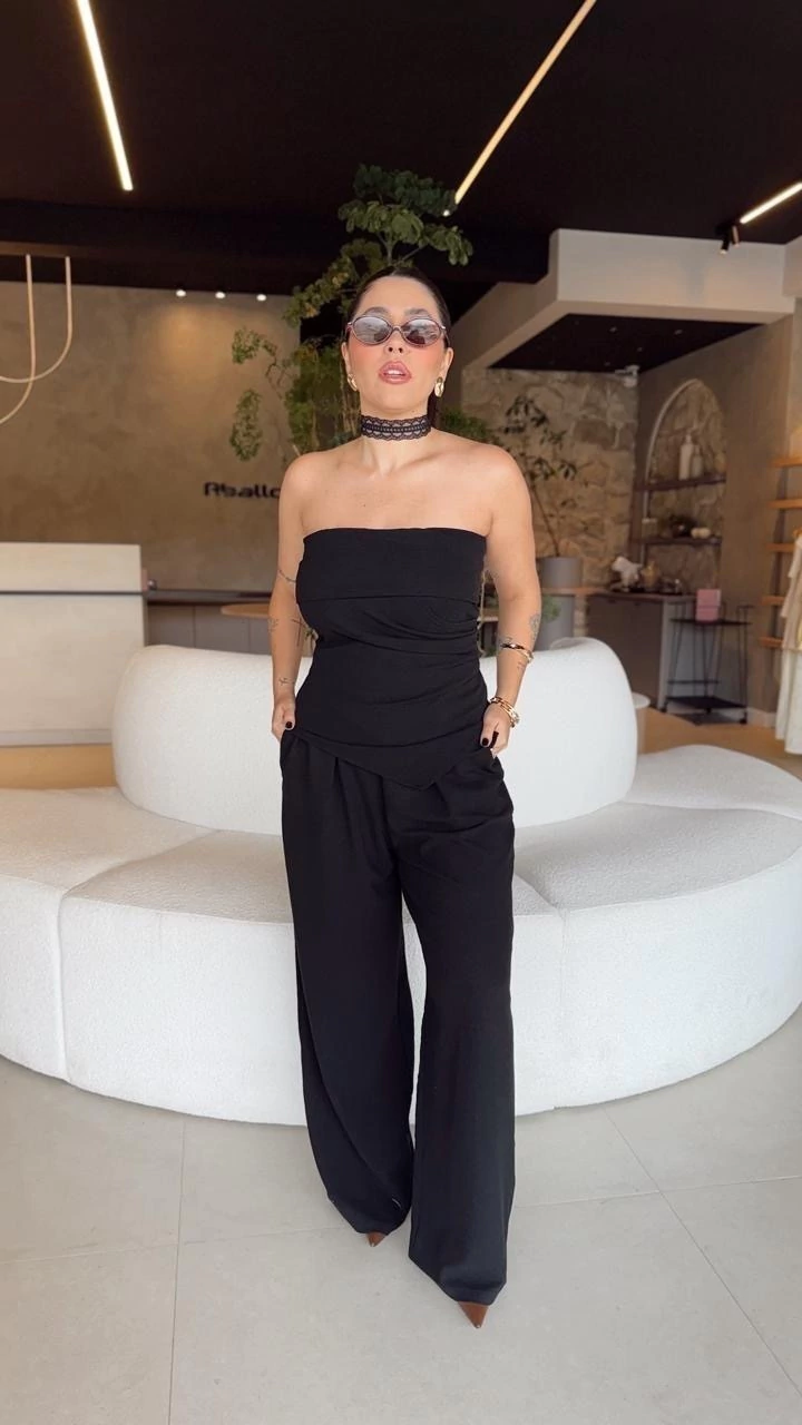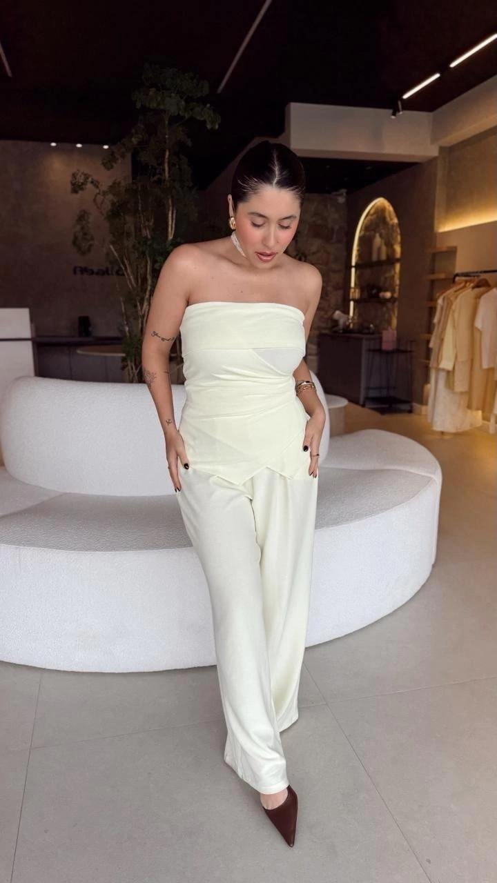Conjunto Stela é a escolha perfeita para quem busca unir elegância e conforto em uma única peça. Desenvolvido para valorizar o corpo feminino, este conjunto apresenta um sofisticado top tomara que caia com detalhe delicado no pescoço, que realça o colo e adiciona um toque de charme ao visual.