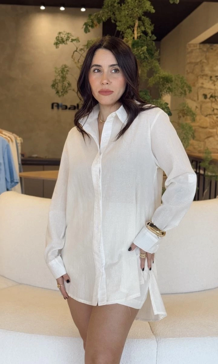 Descubra o toque sofisticado do nosso Conjunto Listra, elaborado com tecido lurex que confere brilho sutil e muito charme a cada peça. Composto por uma blusa de botões e uma calça com cós em elastano, este conjunto proporciona conforto e ajuste perfeito para quem valoriza estilo e praticidade.