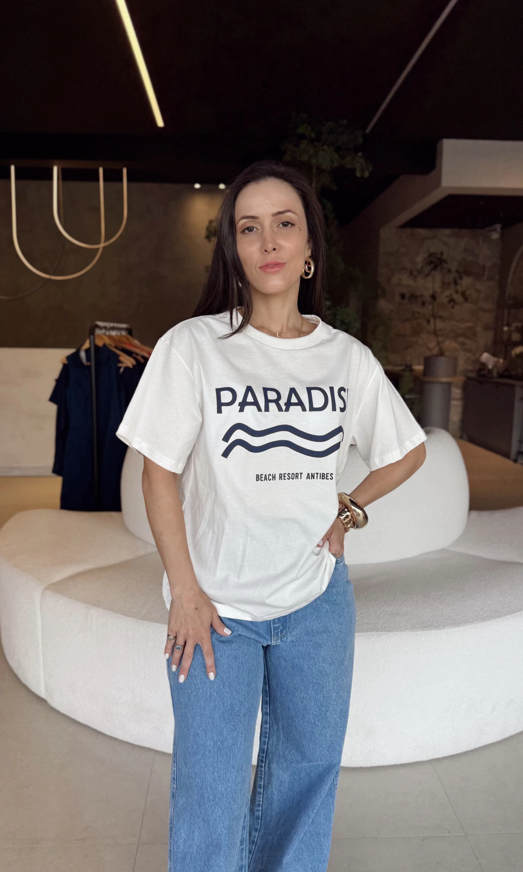 Com design atemporal e sofisticado, a T-shirt Paradise adapta-se facilmente a diferentes estilos, sendo ideal para quem busca uma peça versátil, elegante e prática para o dia a dia.