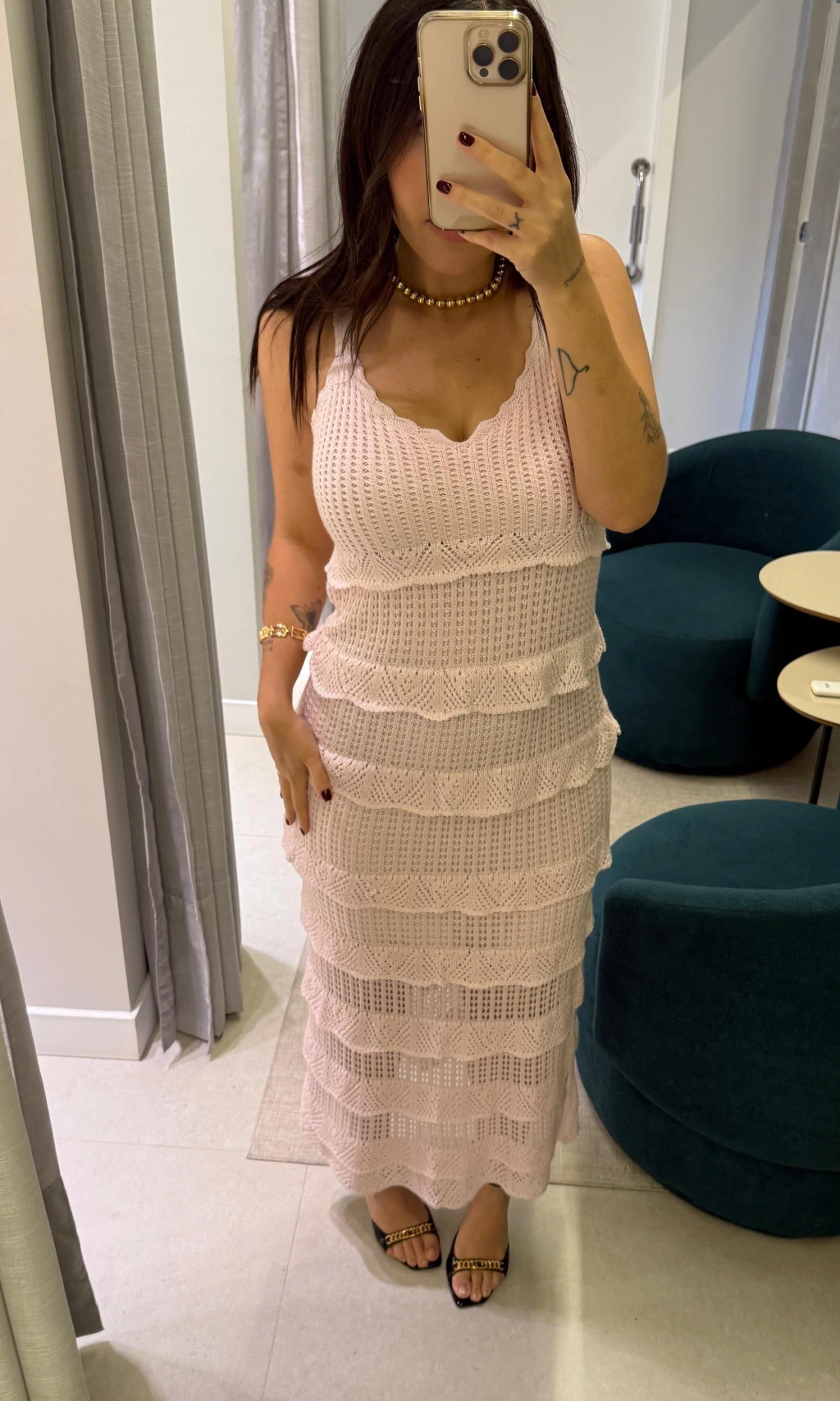 Vestido Tricot Alcinha com Babados – Elegância e Conforto em Cada Detalhe